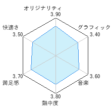 | オリジナリティ | グラフィックス | 音楽 | 熱中度 | 満足感 | 快適さ | 難易度 |